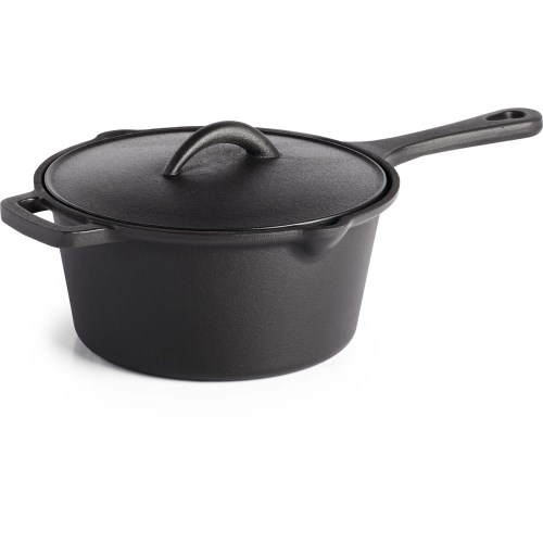 Deze gietijzeren steelpan met deksel heeft een diameter van 19 cm en genereert verdeelt en behoudt warmte, zodat het eten altijd warm blijft.